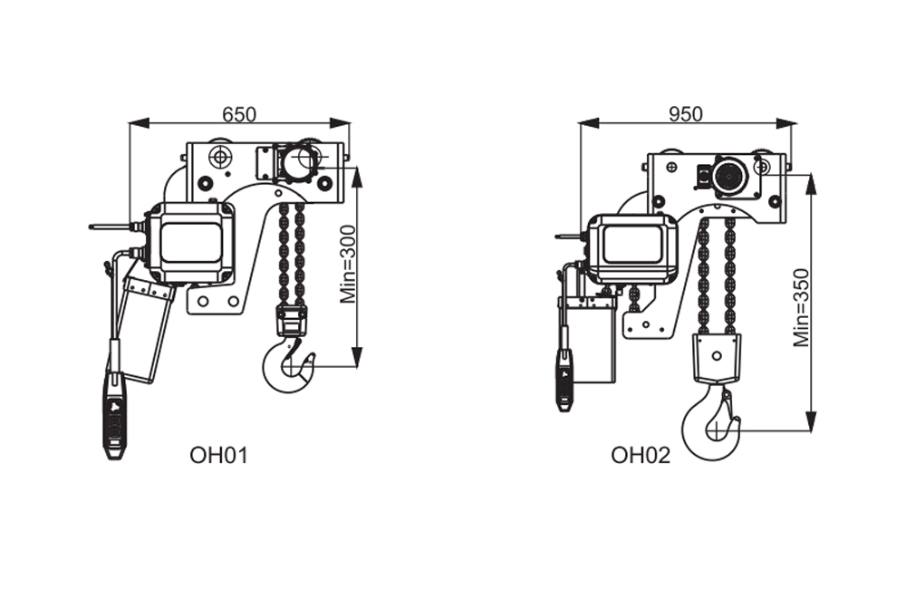 | Hinweis: Der Typ ZH01/02 ist für I-Träger 125-178 geeignet und die elektrische Laufkatze fährt mit einer Geschwindigkeit von 20 m/min. Es kann auch mit KBK. verwendet werden | ||||||